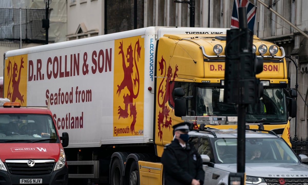 Seafood Lorries Travel To Westminster For Protest Against Brexit Red Tape Brexit The Guardian